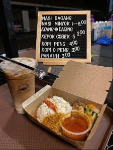 Las especialidades de Nasi Dagang Depang Umoh incluyen Kedai Kopi.